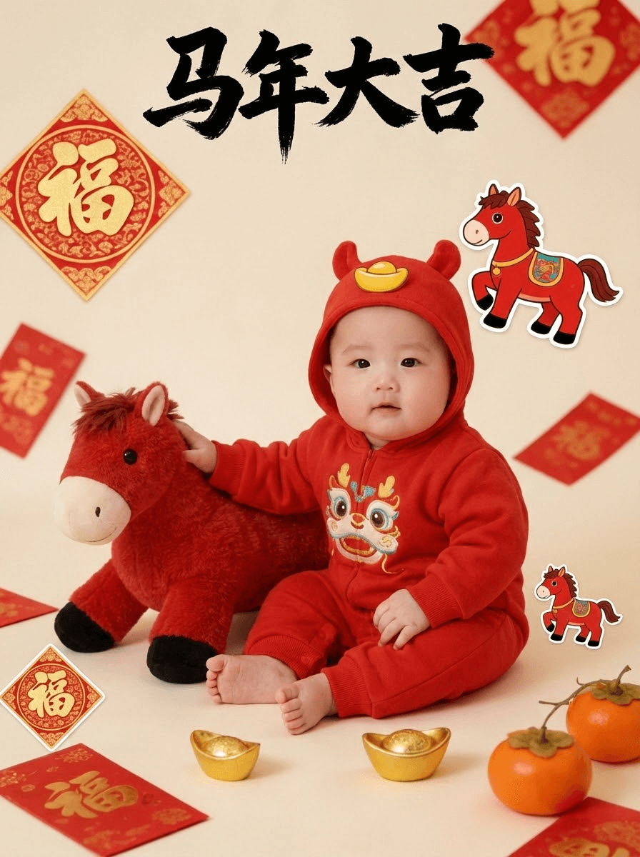 上传照片,选择服装和风格,AI为您生成独一无二的新年全家福